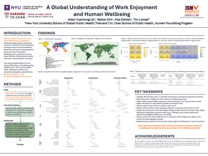 - 08-2025: Attended JSM 2025 in Nashville to present our work enjoyment paper